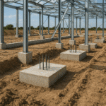 Podstawą obiektu są ramy kratownicowe lub dwuteowniki, tworzące szkielet, na którym opiera się pokrycie dachowe i ścienne. Zastosowanie konstrukcji nośnej z stali pozwala na uzyskanie dużych rozpiętości bez konieczności stosowania słupów wewnętrznych, co zwiększa funkcjonalność przestrzeni.